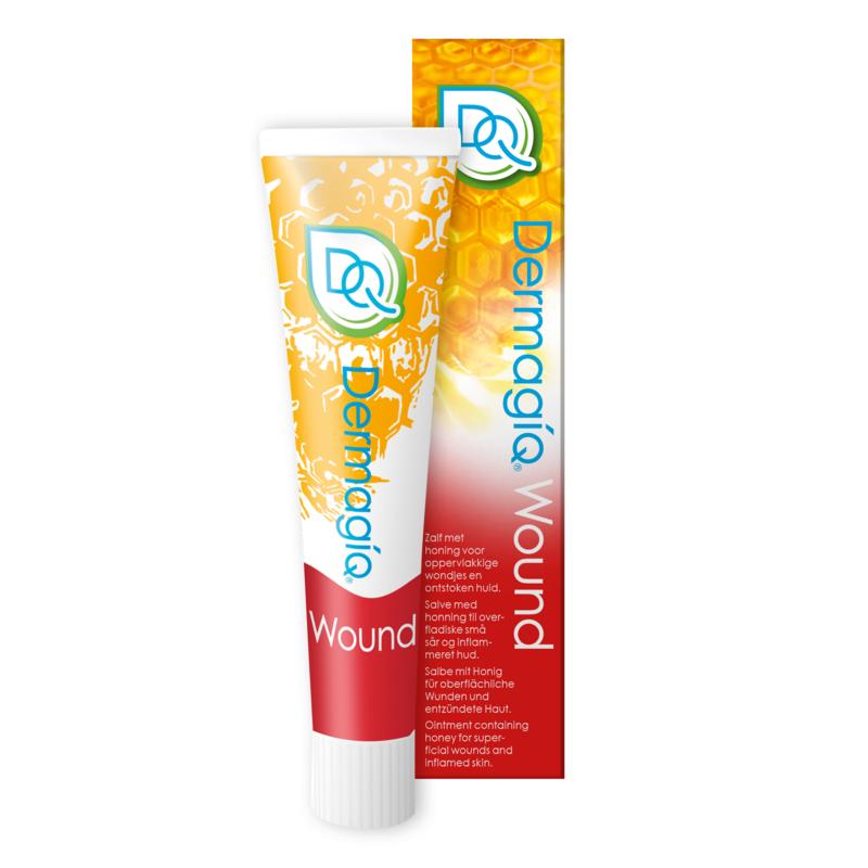 Dermagiq® Wound is een helende crème voor de behandeling van oppervlakkige wondjes en huidirritaties zoals eczeem en insectenbeten. Dermagiq® Wound bevat een huidversterkende basiscrème in combinatie met zuivere enzymrijke honing. De goed smeerbare crème brengt de geïrriteerde huid tot rust en stimuleert een snel herstel van wondjes. De enzymrijke honing zorgt voor een effectieve bescherming tegen infecties, die kunnen ontstaan door krabben bij onder andere eczeem. Dermagiq® Skin is geschikt voor alle leeftijden. Dermagiq® Skin bevat geen conserveringsmiddelen, maar is gesteriliseerd om bacteriën en bacteriesporen te doden. Daarom is Dermagiq® Skin ook veilig voor kinderen jonger dan 1 jaar.