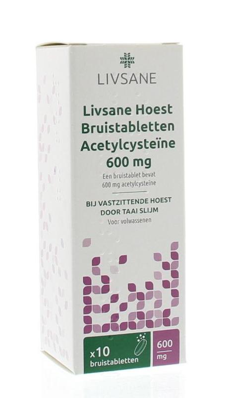 - Livsane Hoest Bruistabletten Acetylcysteïne 600 mg is niet geschikt voor kinderen tussen 2 en 18 jaar, en mag niet gebruikt worden bij kinderen onder 2 jaar.