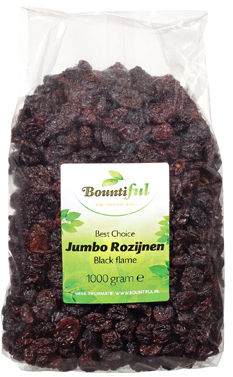 Extra grote verpakking rozijnen. Deze rozijnen worden van de Dark Flame druif gemaakt. Dit is een grotere rozijnensoort. Ze zijn heerlijk zoet, ongezwaveld en een bron van vezels. Kortom een heerlijk. Ze zijn ook prima te gebruiken om mee te koken en te bakken.