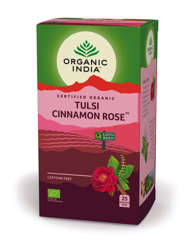 Deze zeer verfijnde Tulsi-melange streelt je zintuigen. Tulsi Cinnamon Rose bestaat uit Rama, Krishna en Vana Tulsi met kaneel, rozen blaadjes, kardemom, kamille, pepermunt en laurierblaadjes.
