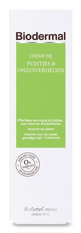 Biodermal Crème bij puistjes & onzuiverheden biedt een effectieve verzorging van puistjes, mee-eters en onzuiverheden, zonder de huid te irriteren of uit te drogen.