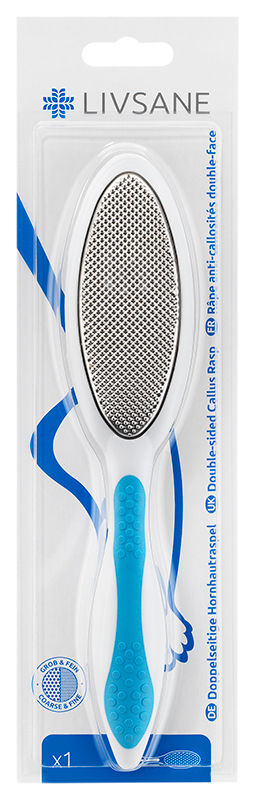 De dubbelzijdige eeltrasp is geschikt voor de verzorging van uw voeten en het ontdoen van eelt.