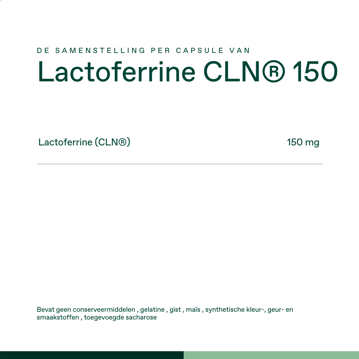 Lactoferrine (MELK) (max. 0,05% LACTOSE), capsulewand (hydroxypropylmethylcellulose, gellangom).