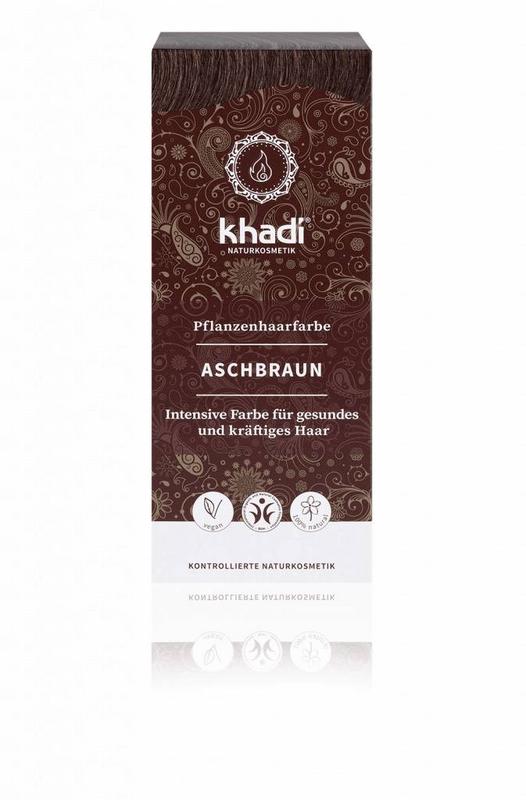 Plantaardige asbruine henna haarverfpoeder dat een koele asbruine kleuring geeft aan donkerblond tot donkerbruin haar. Niet geschikt voor direct gebruik op grijs of blond haar, in dat geval eerst voorkleuren met Khadi Goudgloed!