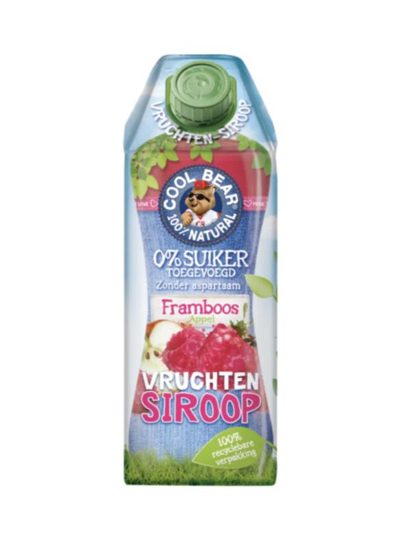 Water, Sap uit vruchtenconcentraat 75% (appel 72,4%, framboos 2,6%), voedingszuur (citroenzuur, ascorbinezuur), met zoetstoffen uit steviolglycosides (stevia rebaudioside 97%), natuurlijk aroma, conserveermiddel: natriumbenzoaat