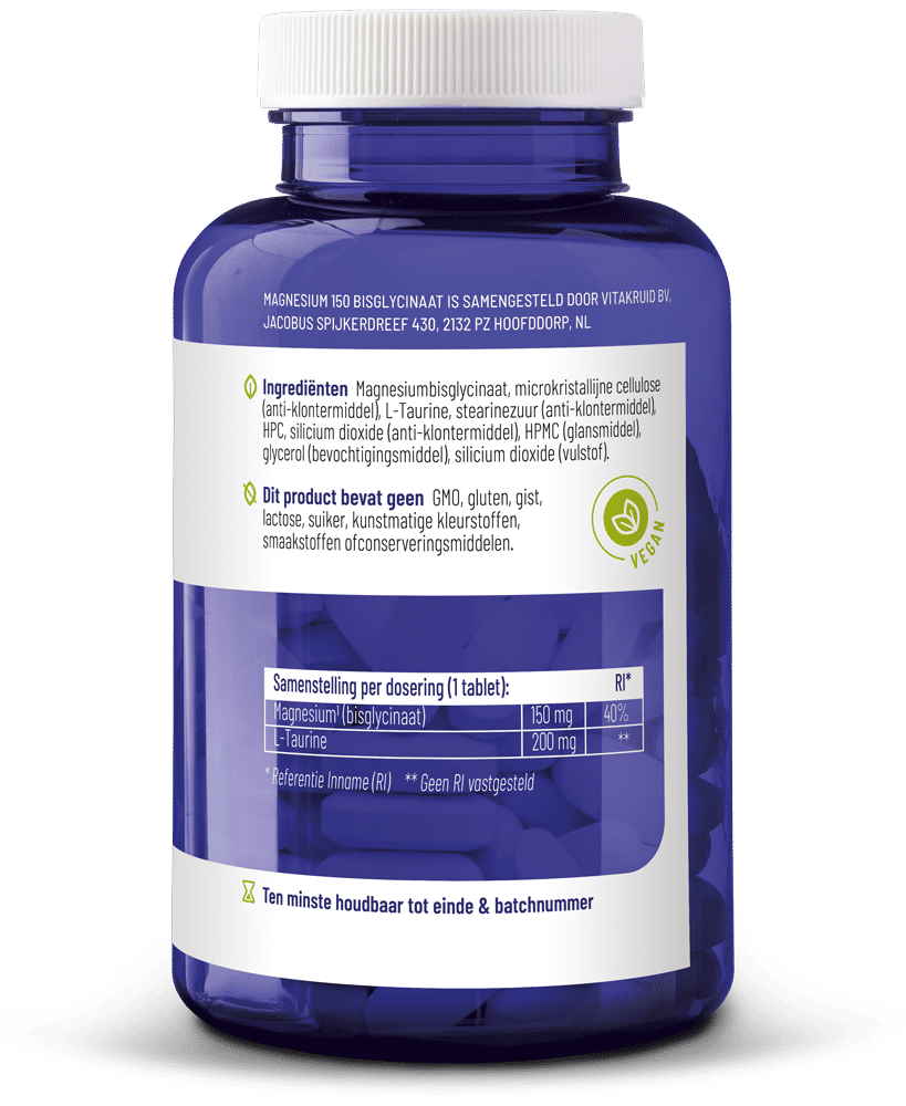 Vitakruid Magnesium 150 Bisglycinaat met 200mg L-Taurine
