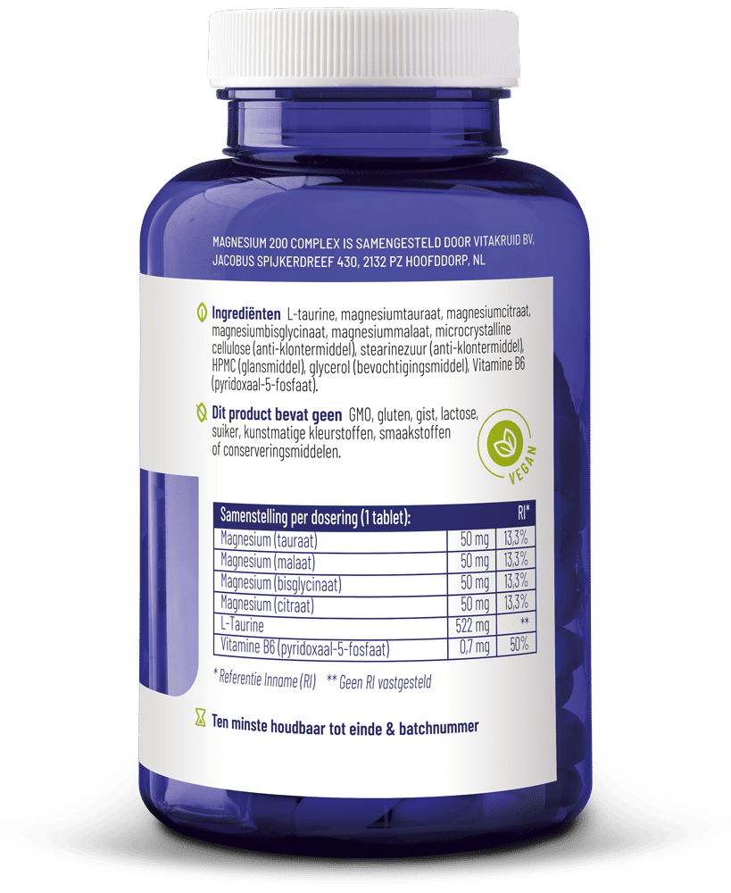 Vitakruid Magnesium 200 Complex Tauraat Malaat Bisglycinaat
