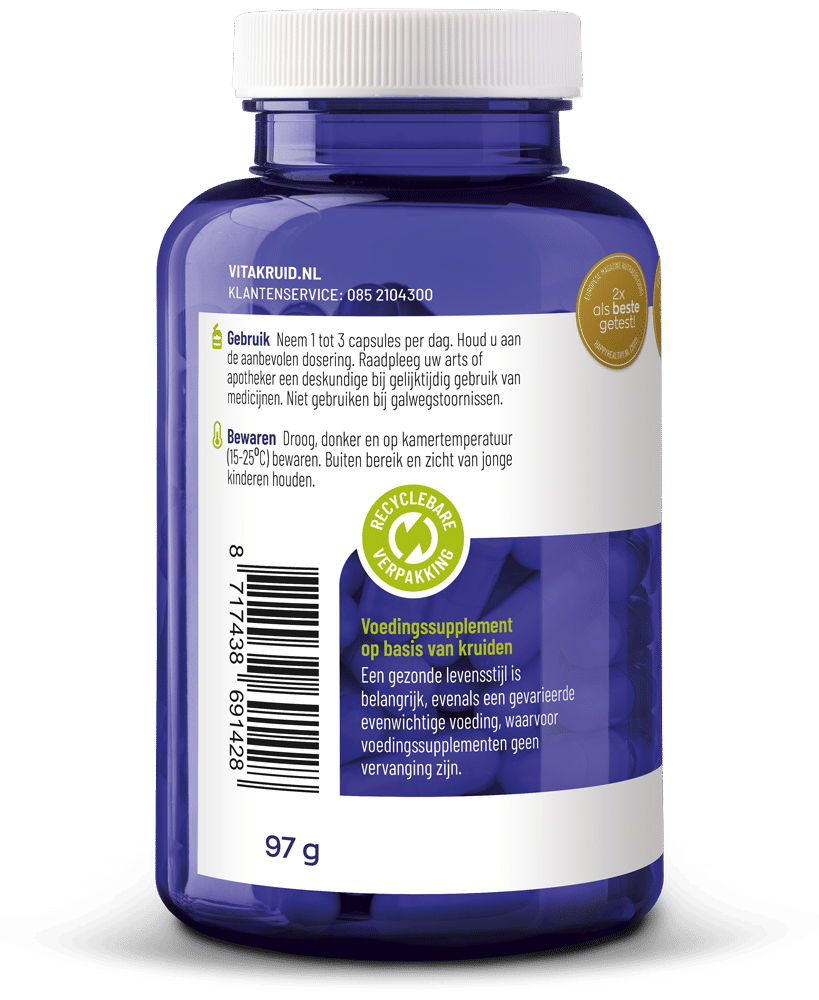 Een gevarieerde, evenwichtige voeding en een gezonde levensstijl zijn belangrijk. Een voedingssupplement is geen vervanging van een gevarieerde voeding.