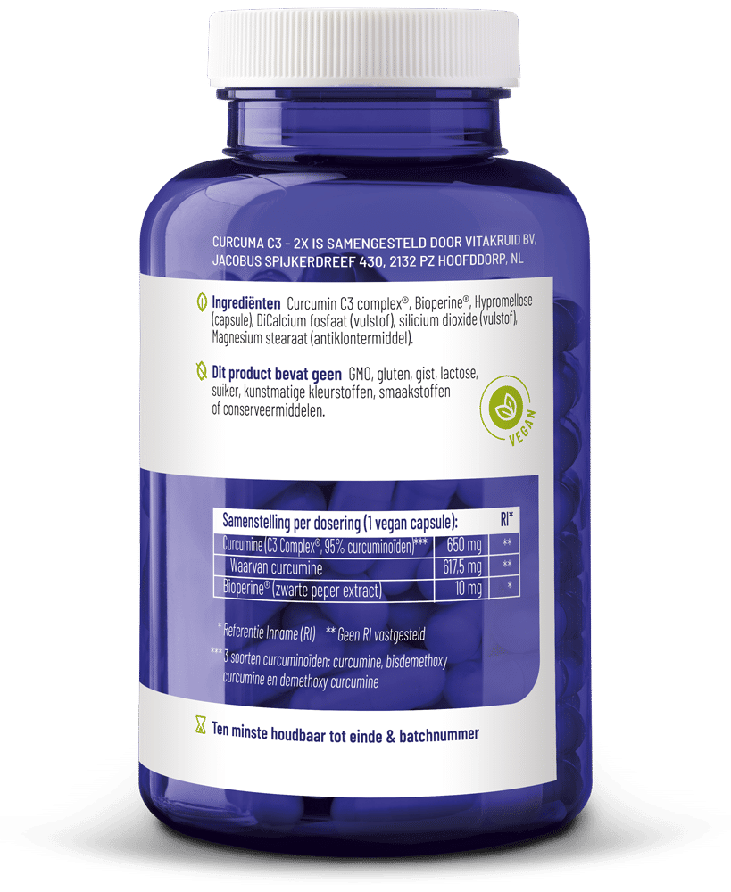 Vitakruid Curcuma C3-2X (95% curcuminoïden) met Bioperine®