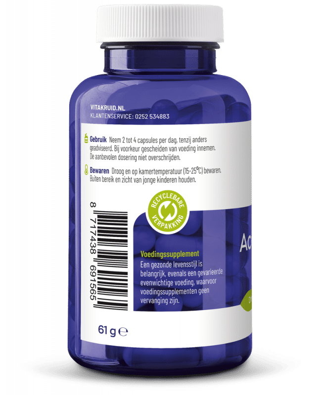 Naast de kwaliteit van het nutriënt is natuurlijk ook de dosering van belang. Een hogere dosering zorgt gewoonweg voor meer werkzame stoffen en dus voor meer effect. De meeste acetyl-l-carnitine supplementen bevatten tussen de 250 en 400 mg per capsule. In de onderzoeken die met dit aminozuur zijn uitgevoerd worden daarentegen doseringen tussen de 500 en 2000 mg aangehouden. Daarom bevat de Acetyl-L-Carnitine van Vitakruid maar liefst 500 mg acetyl-l-carnitine per capsule en wordt er geadviseerd om twee tot vier capsules per dag te nemen!