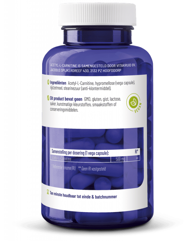 Daarnaast kunnen toereikende carnitine niveau met name voor vegetariërs en veganisten moeilijk te behalen zijn. Het semi-essentiële aminozuur vinden we namelijk vooral terug in dierlijke eiwitten; vlees en zuivel zijn de voornaamste bronnen. Mocht je dus een levensstijl met weinig tot geen dierlijke producten aanhangen dan kan suppletie met Acetyl-L-Carnitine 500 mg van meerwaarde zijn.