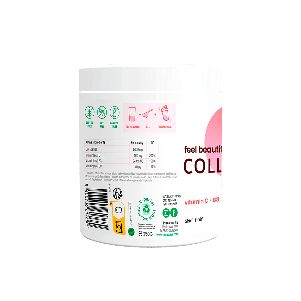 Vitamine C draagt bij tot de normale collageenvorming voor de normale werking van de huid.
