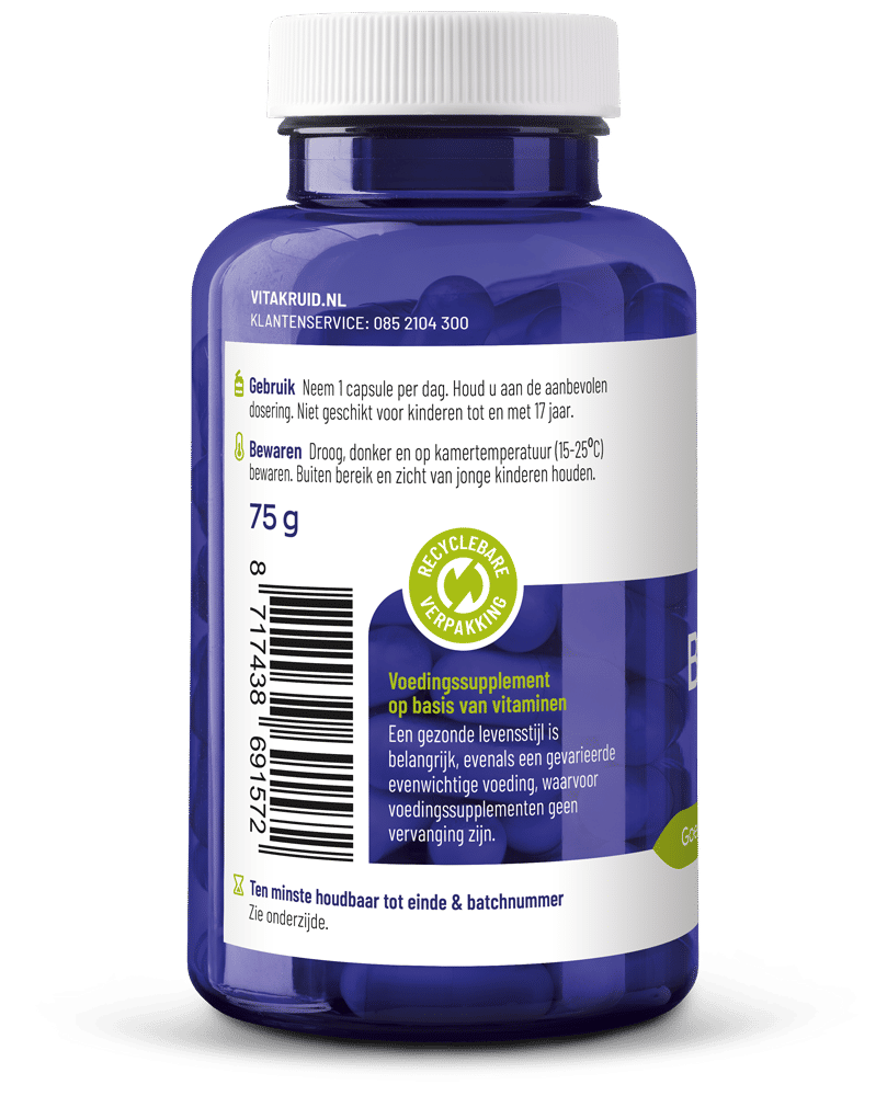 Een gevarieerde, evenwichtige voeding en een gezonde levensstijl zijn belangrijk. Een voedingssupplement is geen vervanging van een gevarieerde voeding.