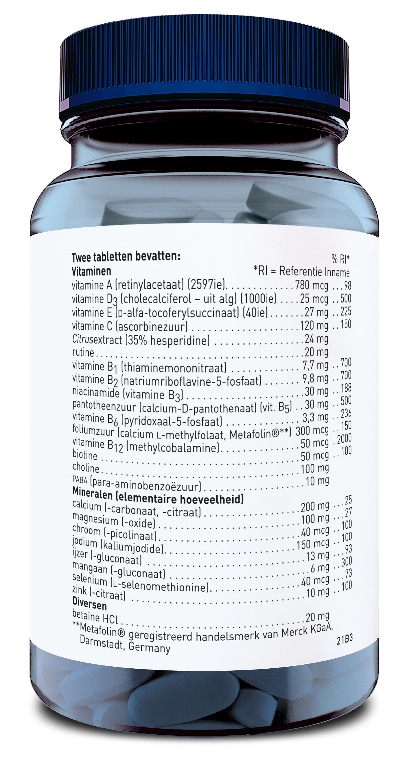 Complete multivitamine met vitamine B12, ijzer, calcium en zink