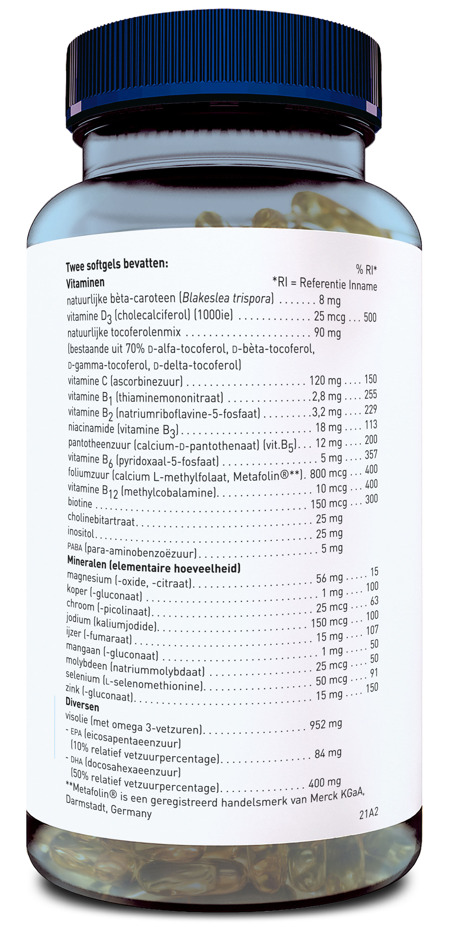 Een gevarieerde, evenwichtige voeding en een gezonde levensstijl zijn belangrijk. Een voedingssupplement is geen vervanging van een gevarieerde voeding.