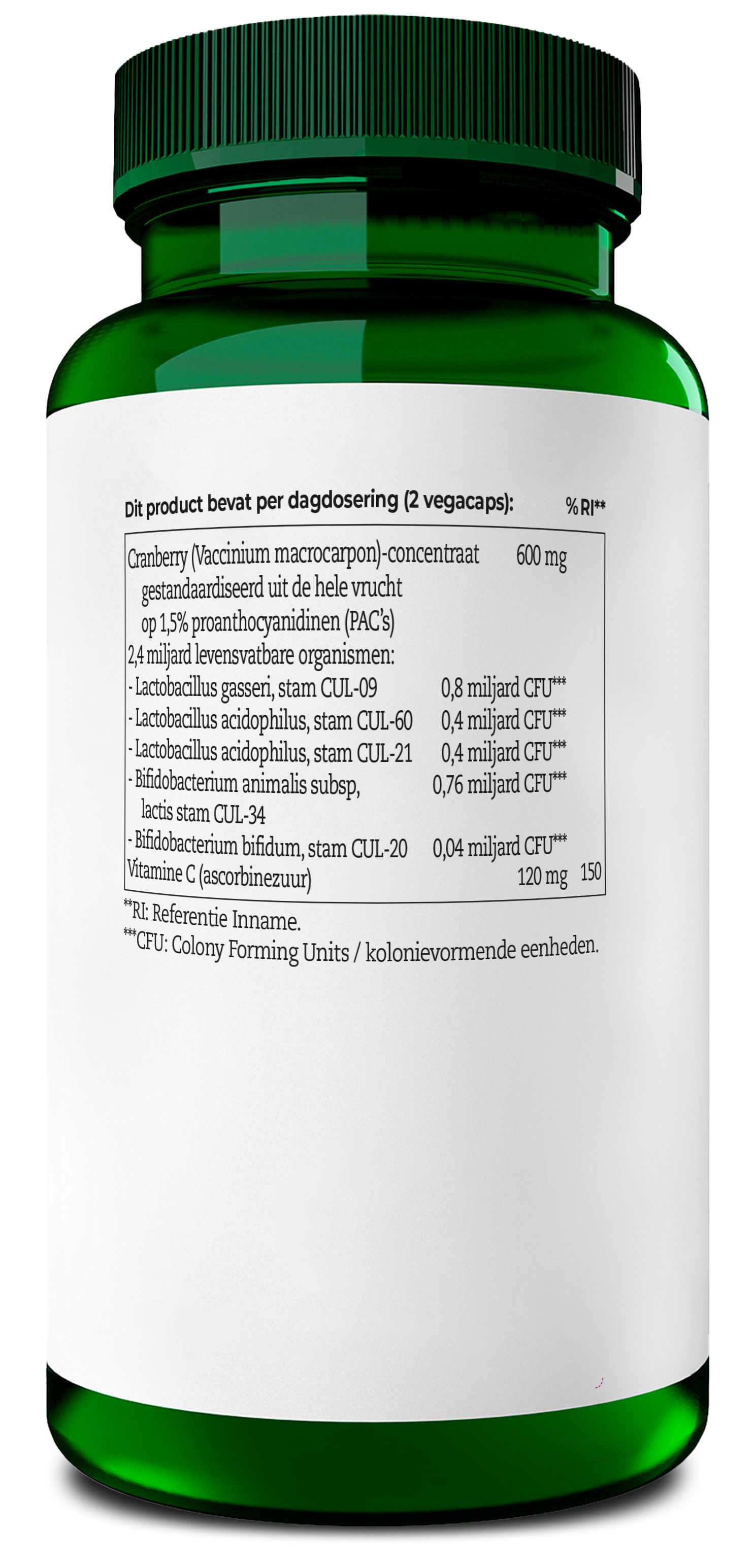 | Cranberry (Vaccinium macrocarpon)-concentraat | 600 mg | |