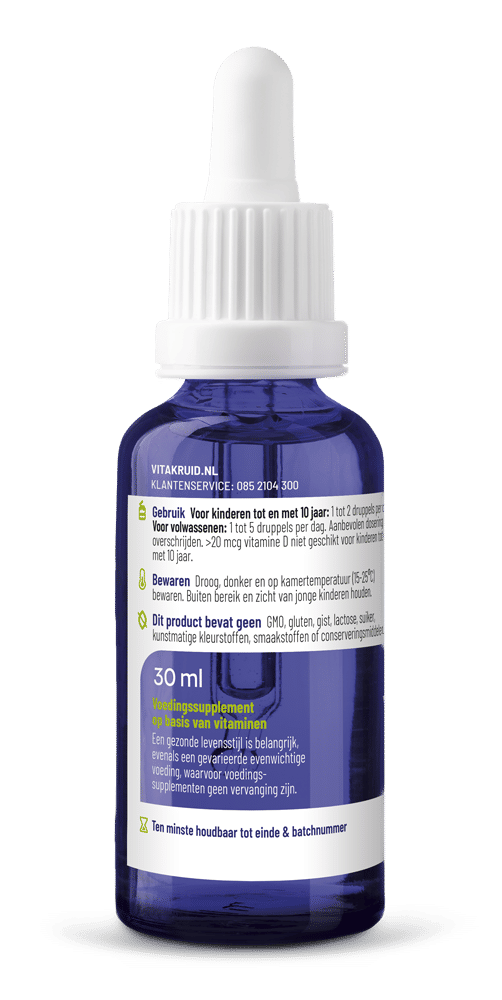 Door het doseergemak is dit vitamine D3 product geschikt voor het hele gezin. Zo is het eenvoudig om met het pipet de aanbevolen dosering van 2 druppels voor je kinderen te bepalen en met een lepel toe te dienen. Als volwassenen kan je de dosering van 5 druppels aanhouden, mits je vitamine D3 huishouding toereikend is. Ontoereikende vitamine D3 niveaus komen voor bij ouderen, mensen die weinig buiten komen, of mensen met een donkere huidskleur. Deze doelgroep heeft baat bij een vitamine D3 inname van 10 druppels of zelfs meer.