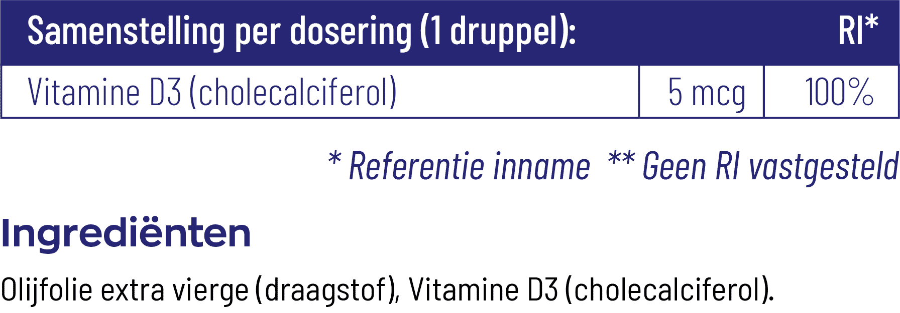 | Samenstelling per dagdosering (1 druppel): | RI* | |
