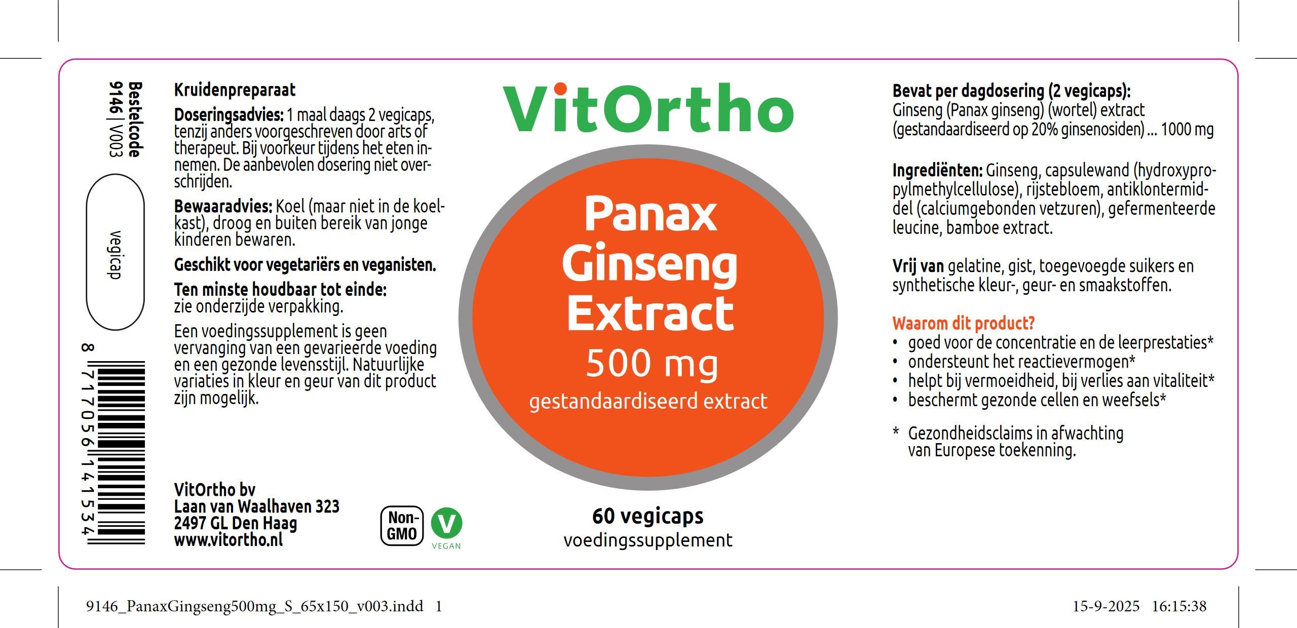 Vitortho Panax ginseng extract 500 mg - Kruidenpreparaat