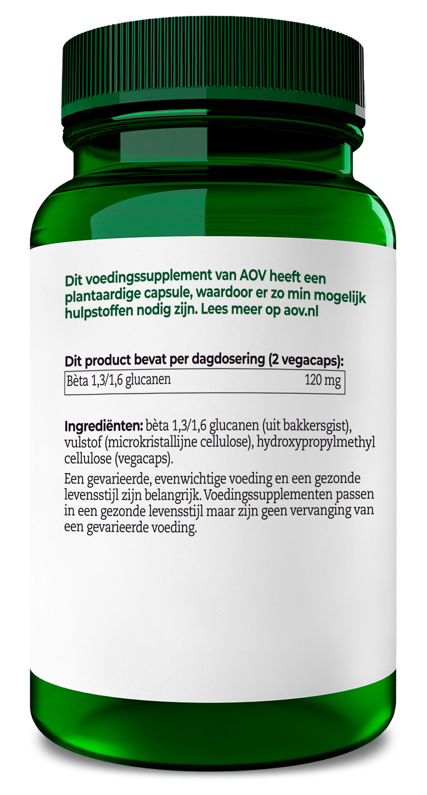 Bèta 1,3/1,6 glucanen (uit bakkersgist), rijstconcentraat, hydroxypropylmethylcellulose (vegacaps)