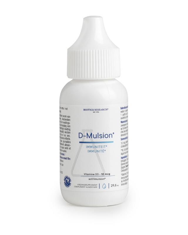 Op zoek naar een Vitamine D complex voor het aanvullen van (een tekort aan) vitamine D in uw lichaam? Biotics D-Mulsion is een handig te doseren micro-emulsie van vitamine D die snel en vrijwel volledig kan worden opgenomen, geschikt voor alle leeftijden.
