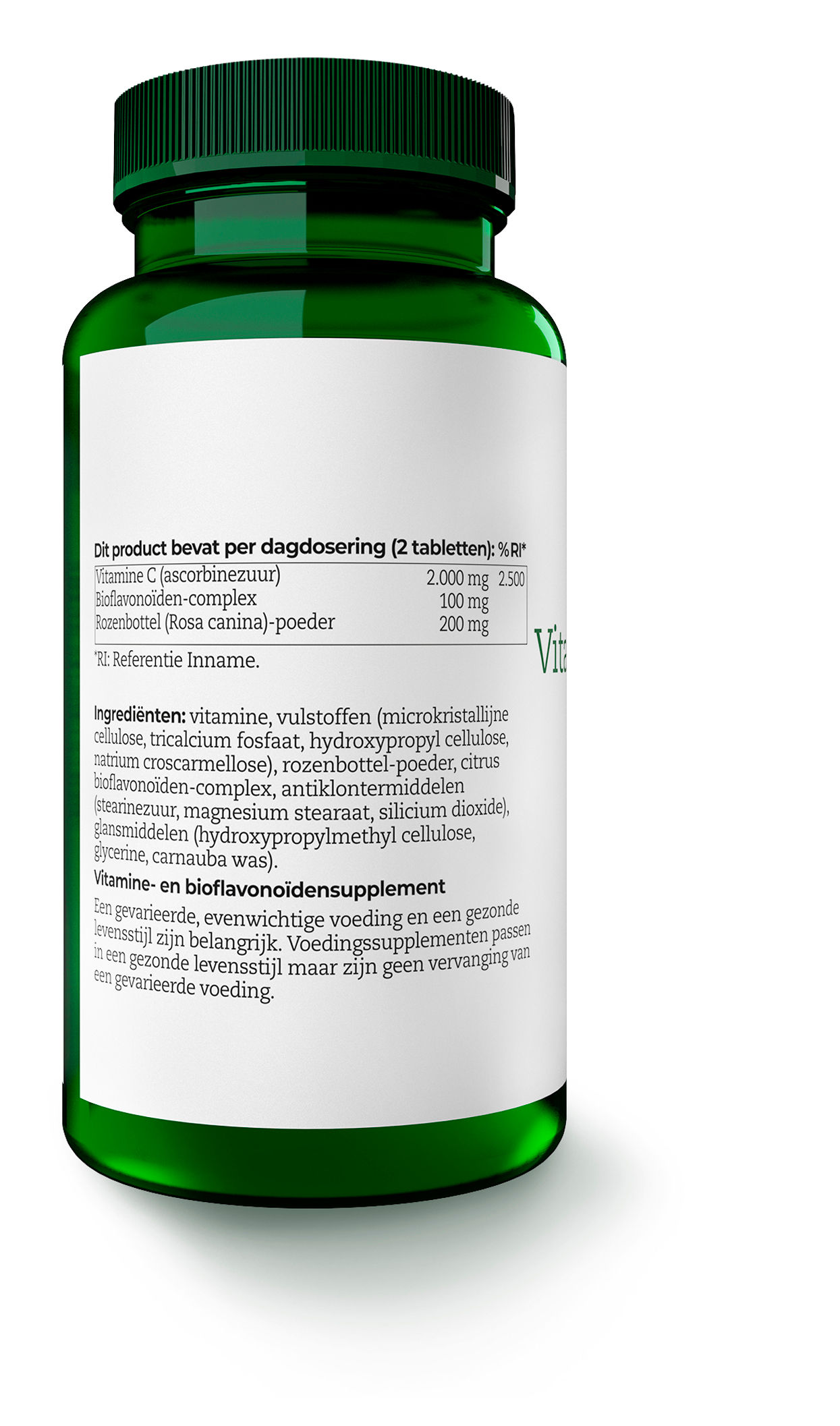 Vitamine C (ascorbinezuur), vulstoffen (microkristallijne cellulose, tricalcium fosfaat hydroxypropyl cellulose, natrium corscarmellose), rozenbottel poeder, citrus bioflavonoiden complex, antiklontermiddelen (stearinezuur, magnesium stearaat, silicium dioxide), glansmiddelen (hydroxpropylmethyl cellulose, glycerine, carnauba was)