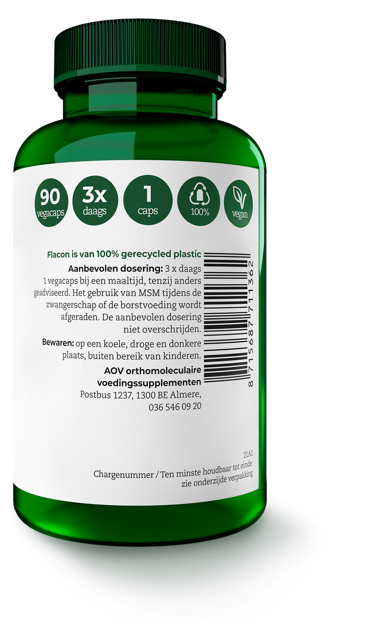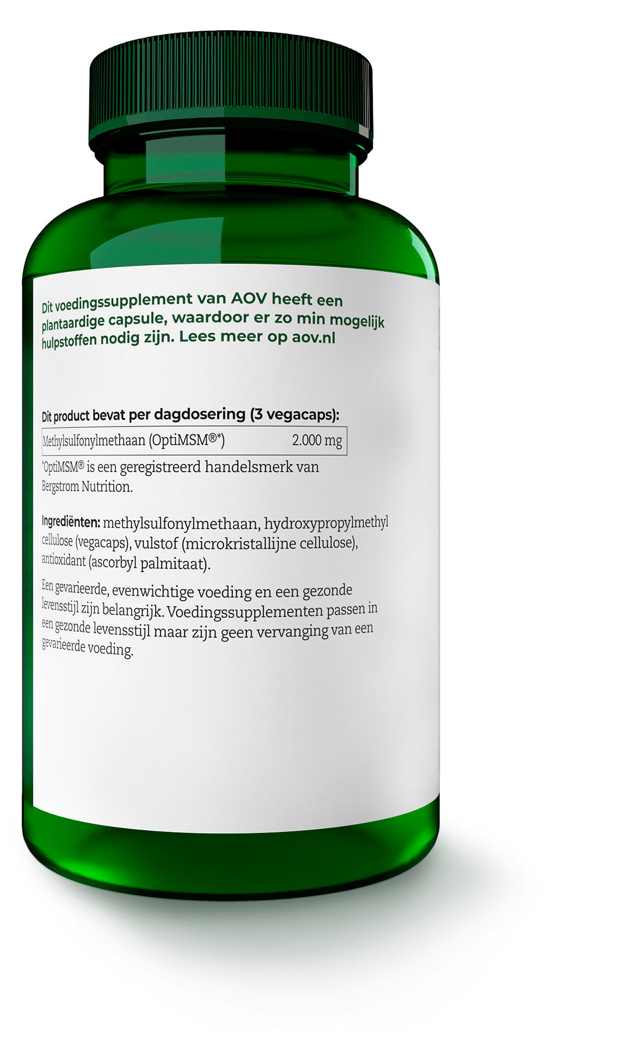 Methylsulfonylmethaan, Hydroxypropylmethylcellulose (vegacaps), vulstof (microkristallijne cellulose), antioxidant (ascorbyl palmitaat)