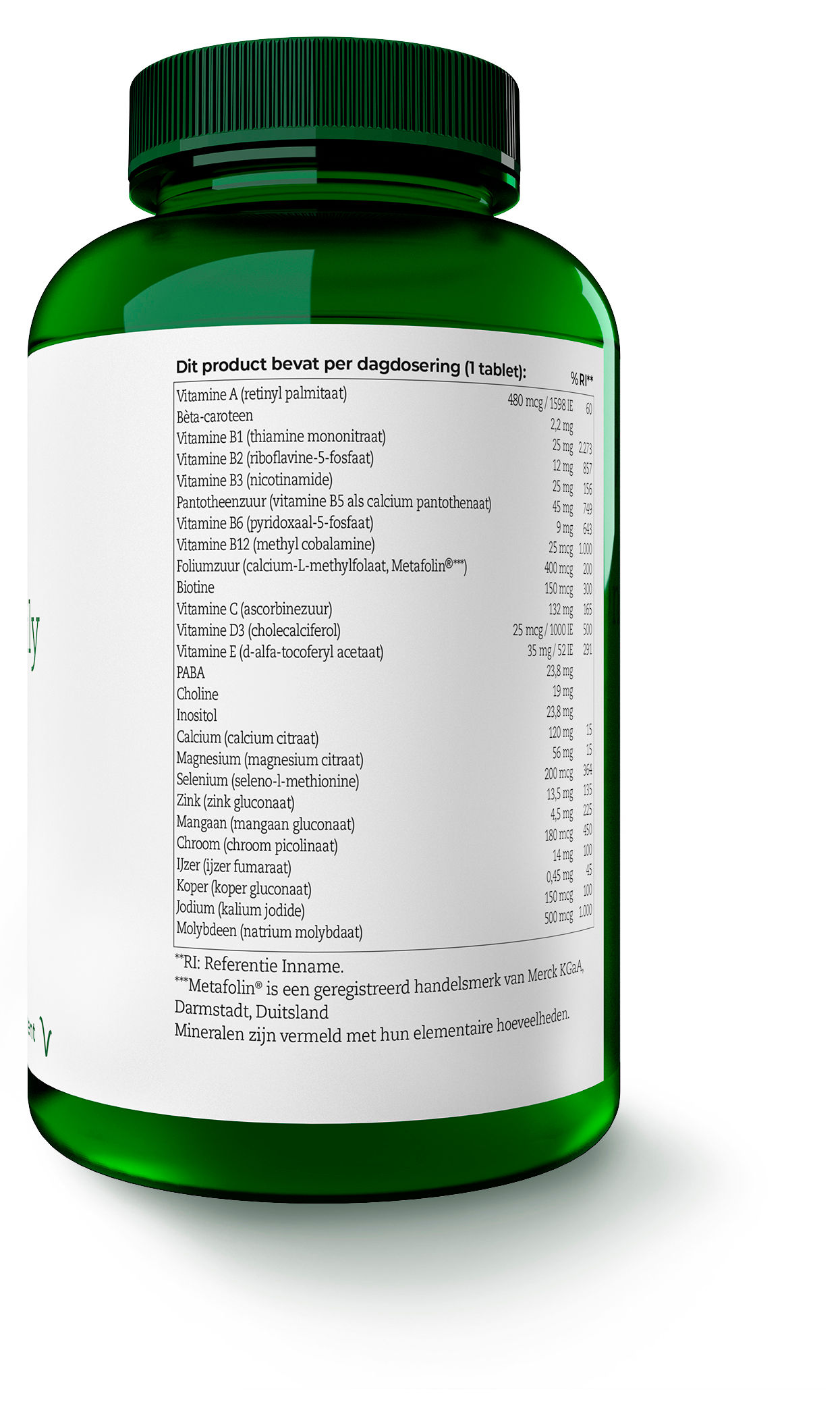 | Foliumzuur (calcium-l-methylfolaat, Metafolin®***)) | 400 mcg | 200% |