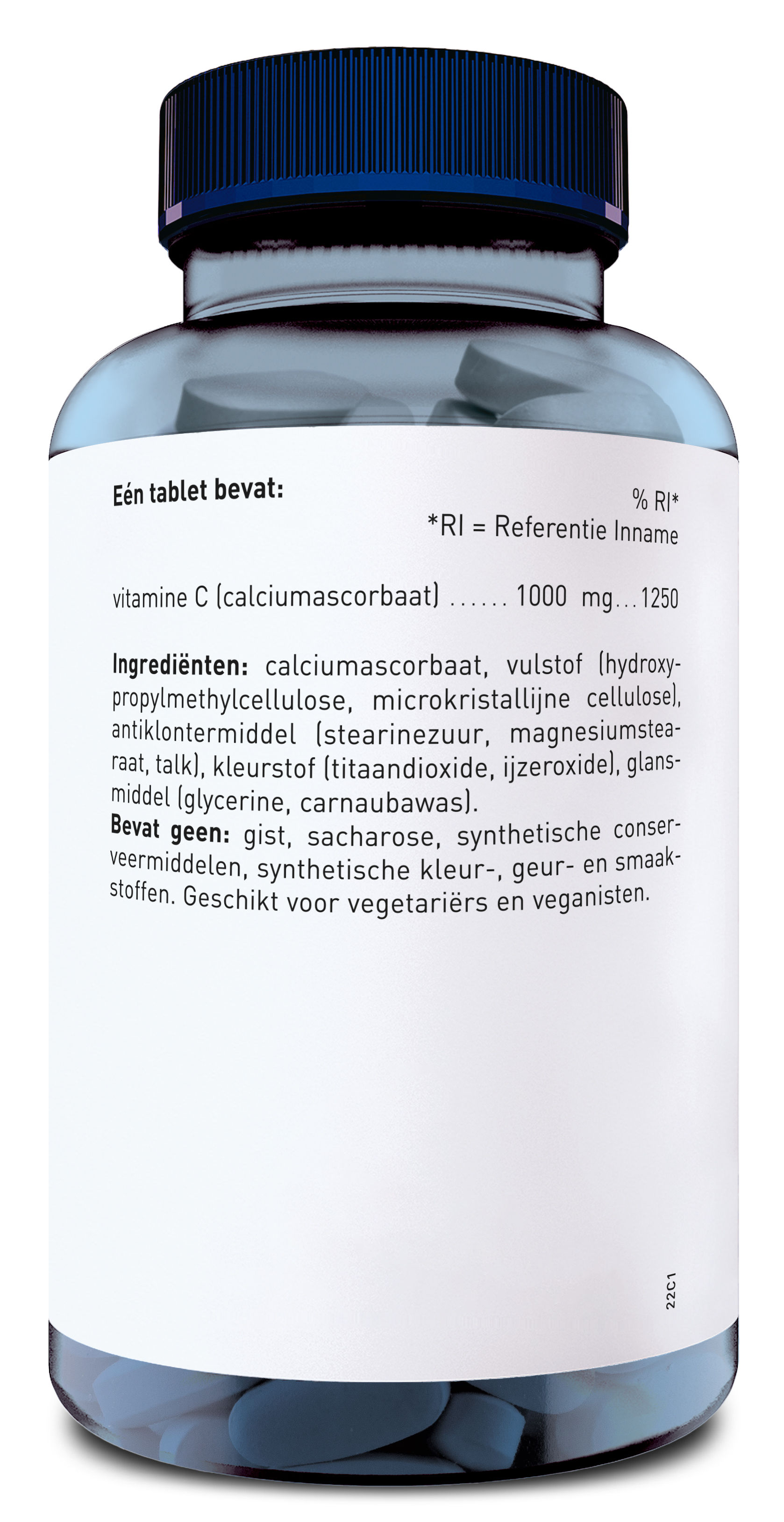 | Vitamine C (calciumascorbaat) | 1000 mg | 1250% |