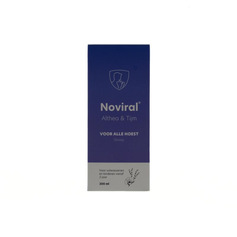 Noviral Alle Hoest Althea en Tijmsiroop verlicht alle soorten hoest, droge zowel als kriebelhoest.