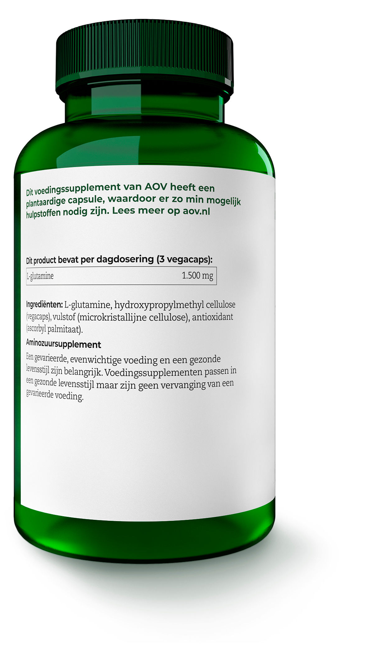 L-glutamine, HPMC (vegacaps), natuurlijke cellulose, vitamine C (ascorbyl palmitaat)