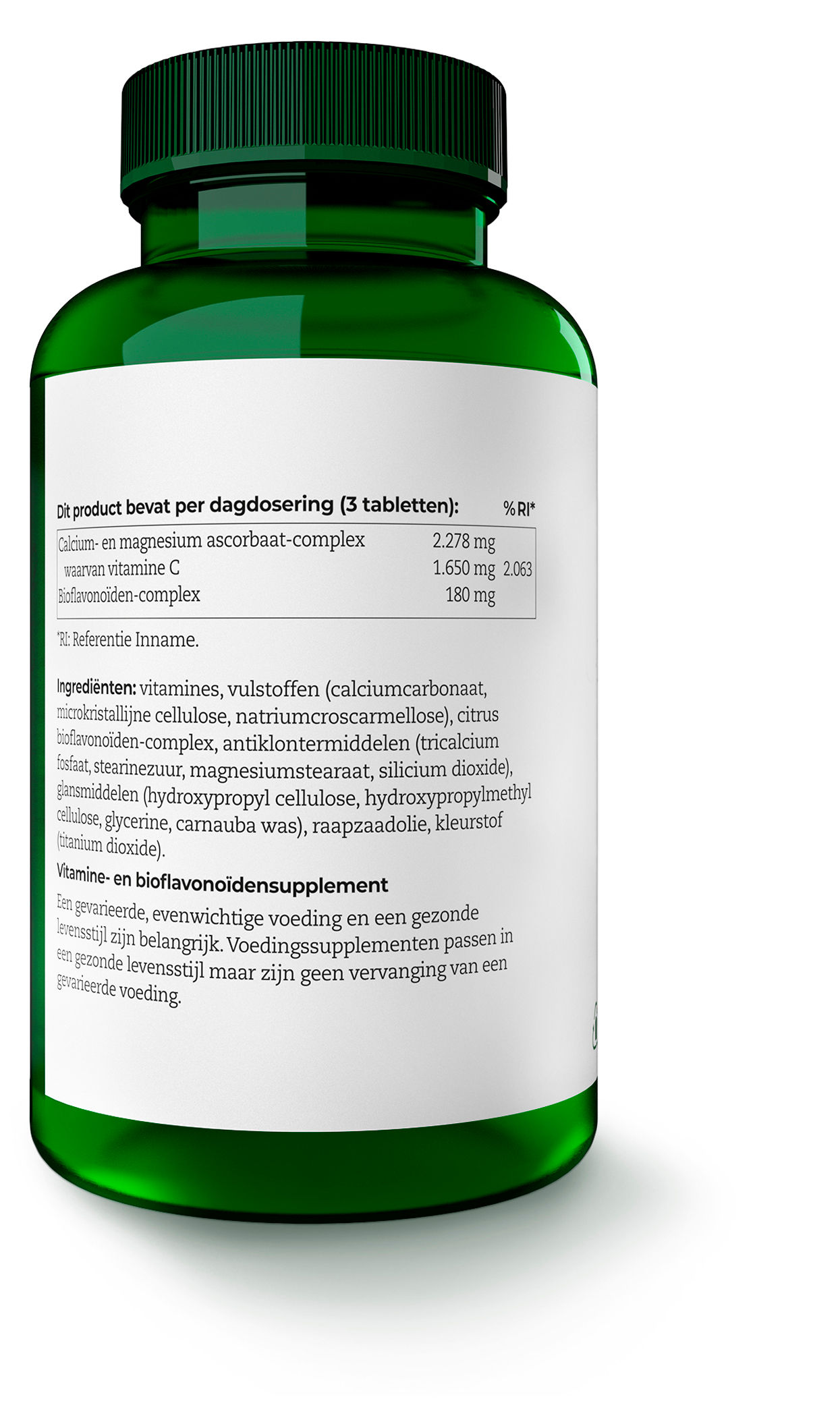 Vitamine C met bioflavonoïden-complex. Niet-zure vorm van vitamine C waardoor deze mild is voor maag en darmen.