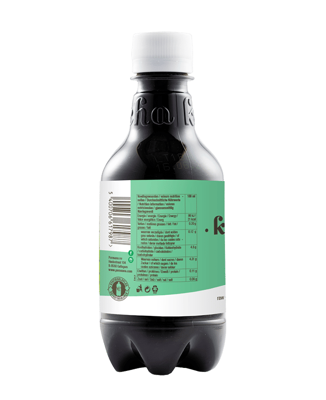 Infusie van groene thee* (gefilterd water + thee), rietsuiker* (verwerkt tijdens gisting),