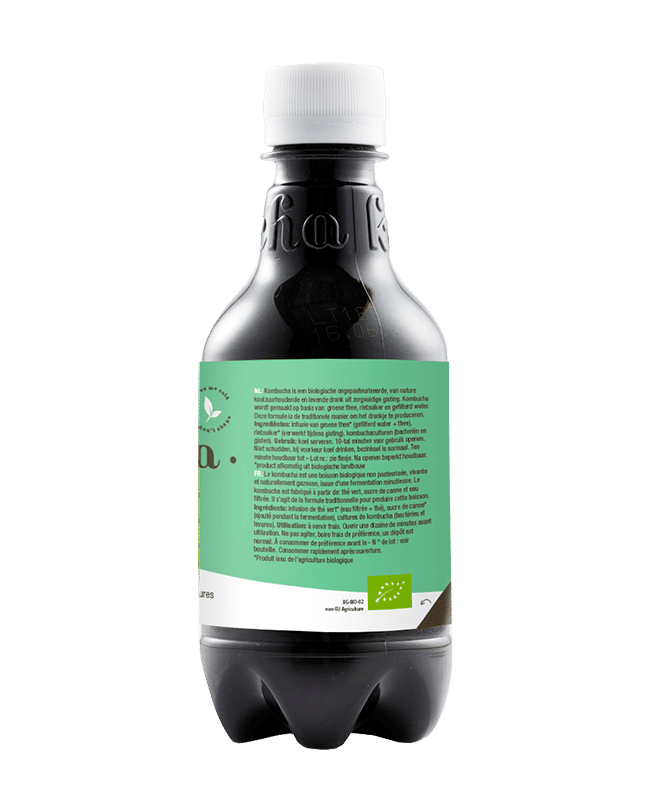 Kombucha is een biologische ongepasteuriseerde, van nature koolzuurhoudende en levende drank uit zorgvuldige gisting.
