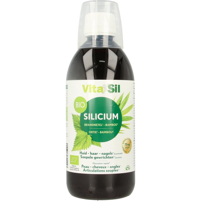 Vloeibaar voedingssupplement op basis van biologisch bamboe-extract en biologisch vloeibaar brandnetelextract.