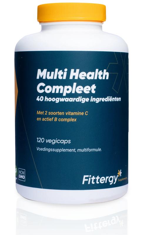 Multi Health Compleet is een volledige formule van zeer hoge kwaliteit. Er is gekozen voor diverse actieve B vitamines (B2, B6, B12 en foliumzuur) en de organische mineraalingredienten zoals magnesiumtauraat, kopercitraat, mangaancitraat en ijzerbisglycinaat. Fittergy heeft tevens als één van de weinige multi formules een tocoferolen mix van natuurlijk voortkomende tocoferolen, namelijk de alfa, beta, gamma en delta tocoferolen.