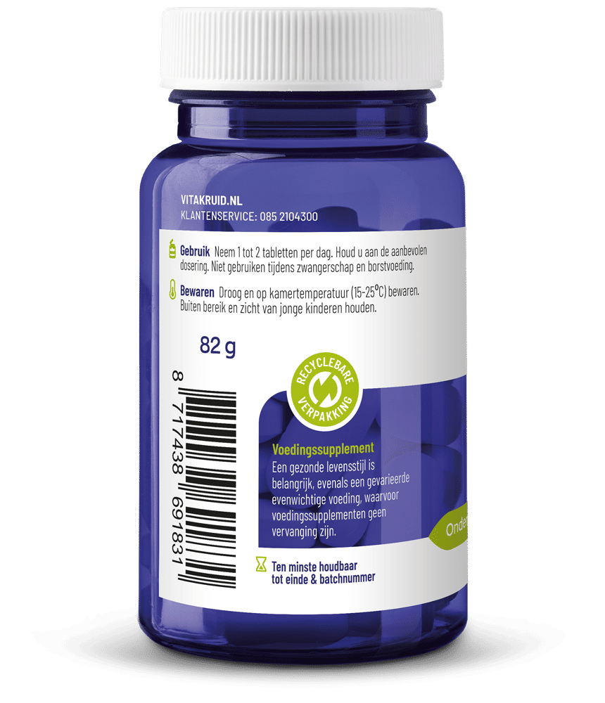 Een gevarieerde, evenwichtige voeding en een gezonde levensstijl zijn belangrijk. Een voedingssupplement is geen vervanging van een gevarieerde voeding.