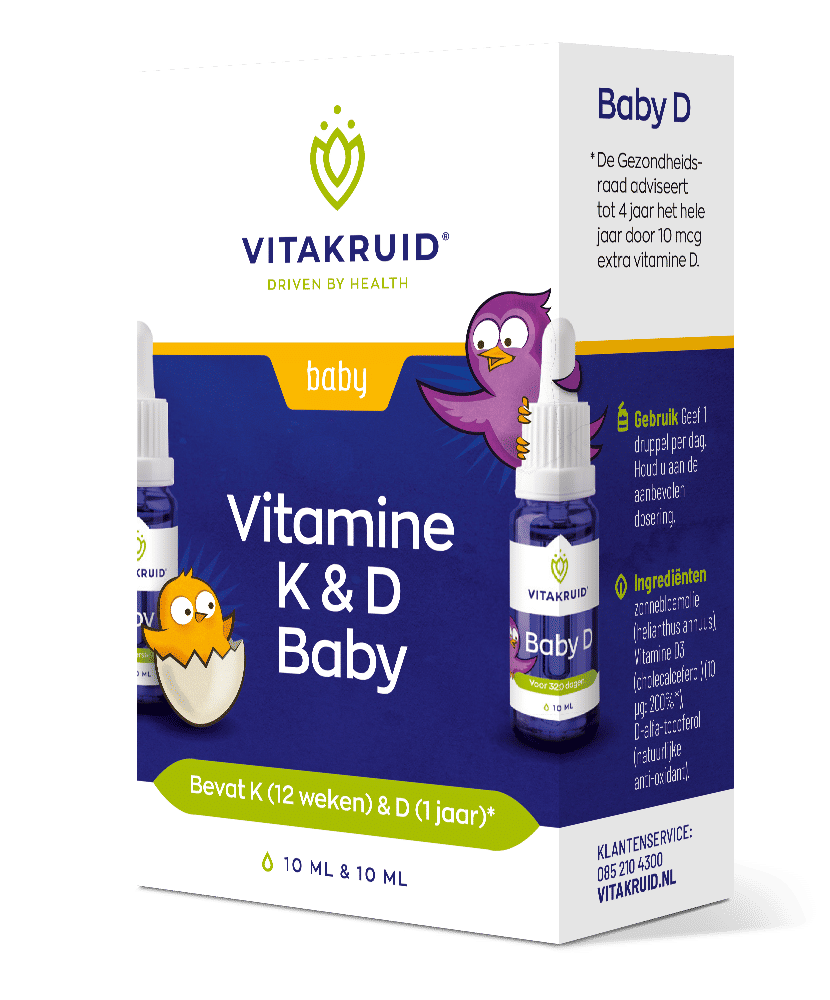 Eenzelfde soort principe geldt voor vitamine D. Deze vitamine is van belang voor de opbouw en ontwikkeling van het skelet van kinderen. Echter zijn pasgeboren baby’s nog niet in staat om voldoende vitamine D uit hun voeding of zonlicht te verkrijgen. Dit is de reden waarom de Gezondheidsraad suppletie met zowel vitamine D als K aanraadt.