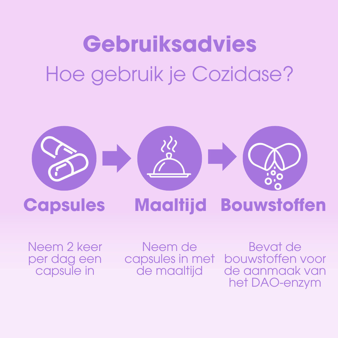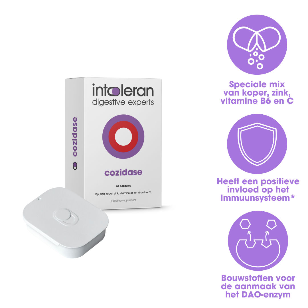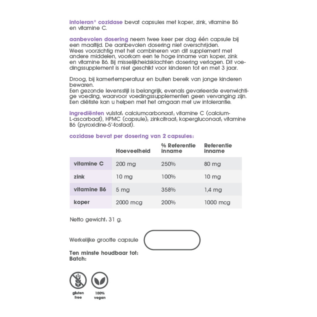 Cozidase, bevat capsules met koper, zink, vitamine C en vitamine B6.