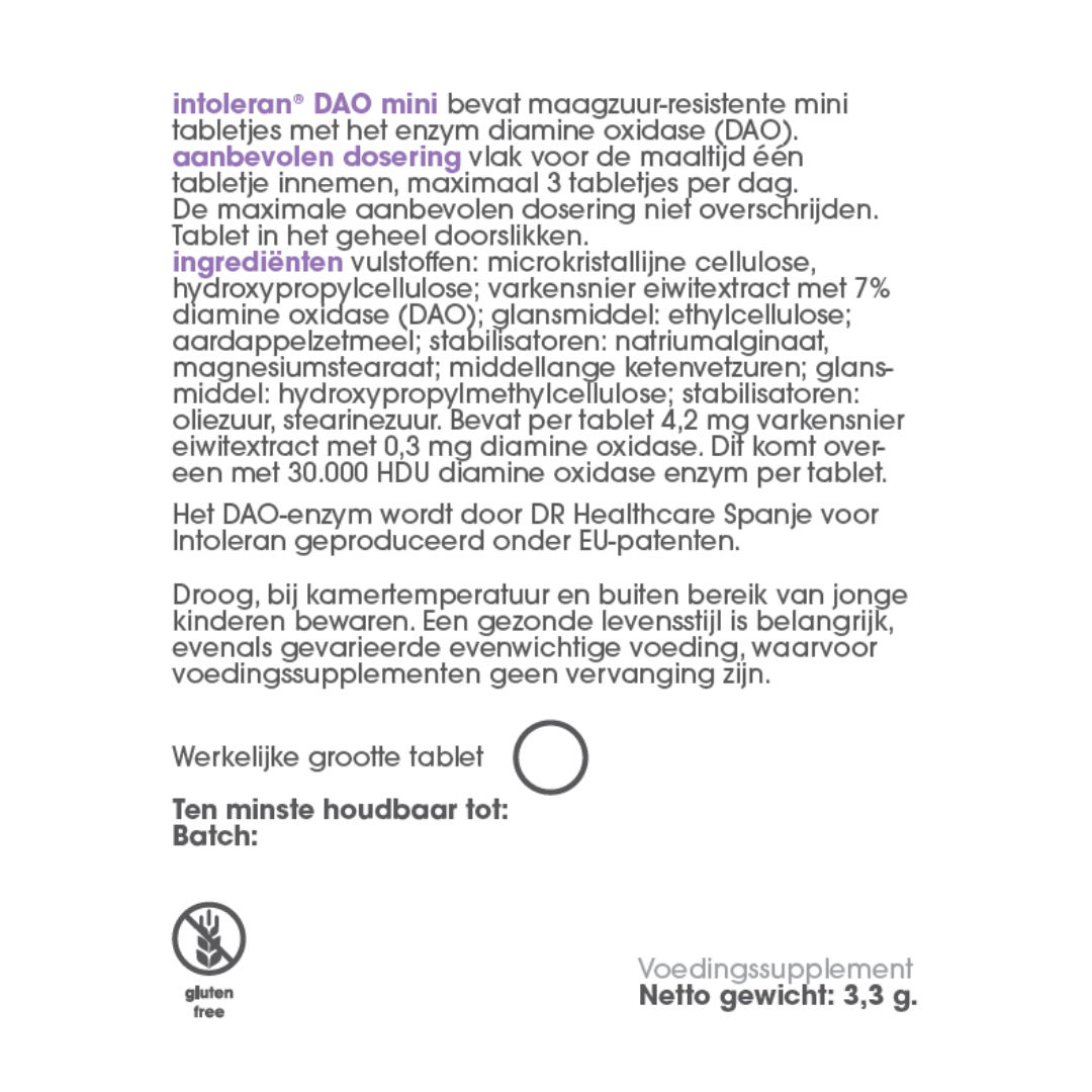Bevat 20.000 - 30.000 HDU Diamine Oxidase (DAO) enzym per tabletje.