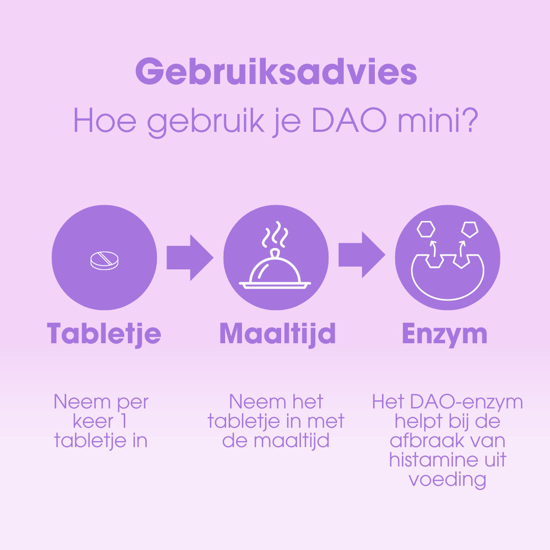 Gebruiksadvies: Vlak voor de histamine bevattende maaltijd 1 tabletje innemen. Maximaal 3 tabletjes per dag gebruiken.