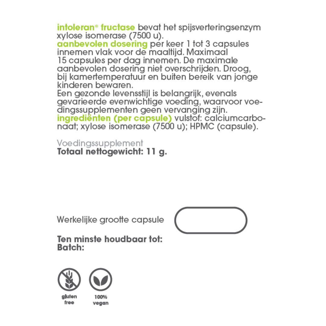 Vulstof: Calcium carbonaat; Xylose Isomerase (7500 u); HPMC (capsule).