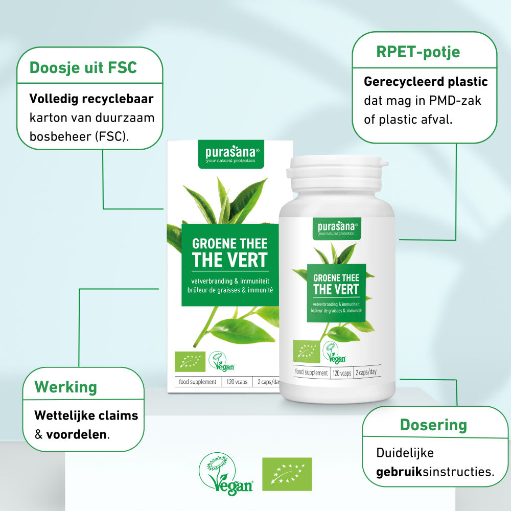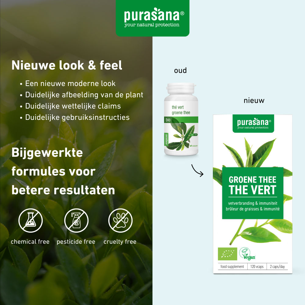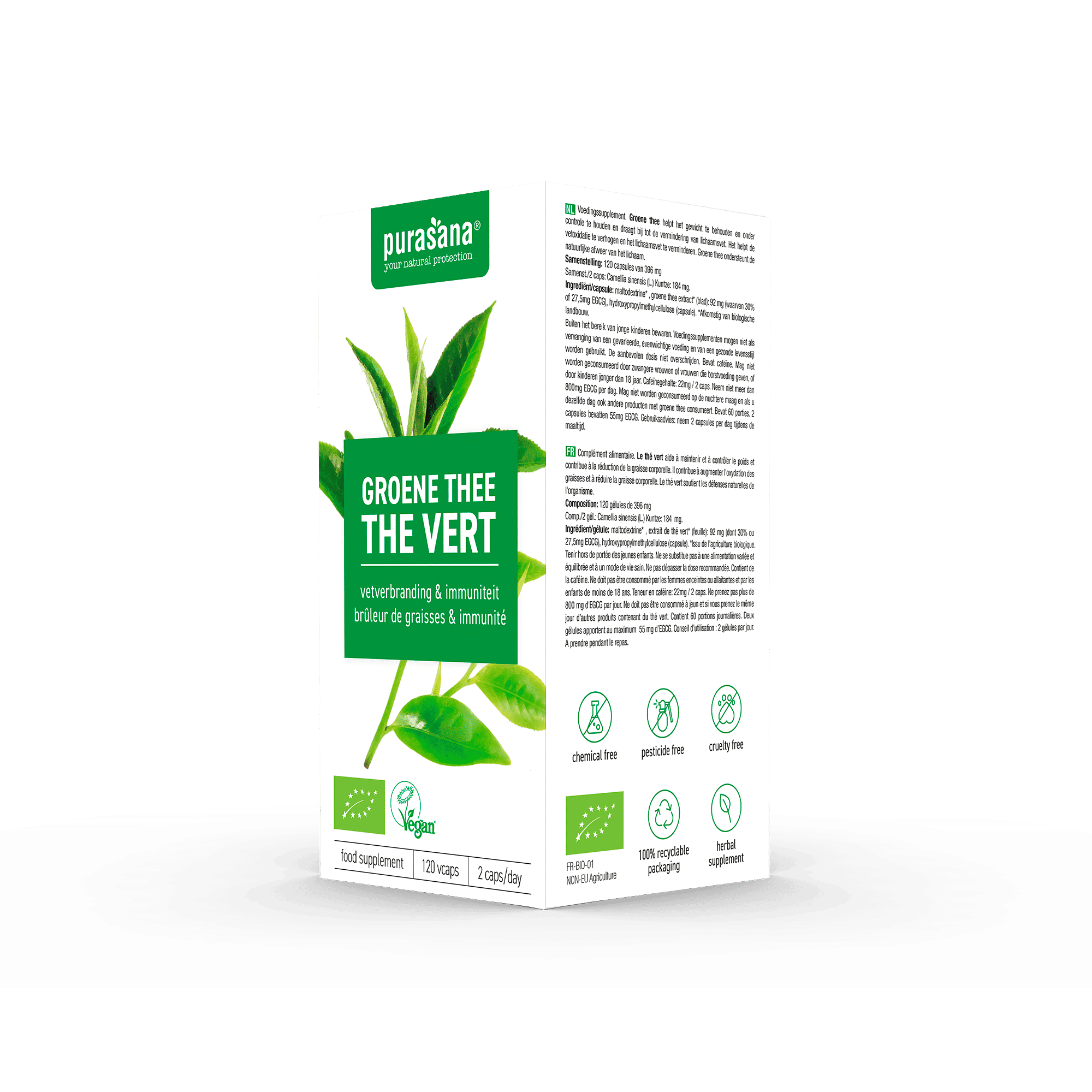 Purasana Groene Thee capsules worden gemaakt van de Camellia Sinenis. Dit is een struik die zijn oorsprong vindt in Zuidoost-Azië. Van deze struik wordt ook wel groene, zwarte, witte en oolong thee gemaakt.