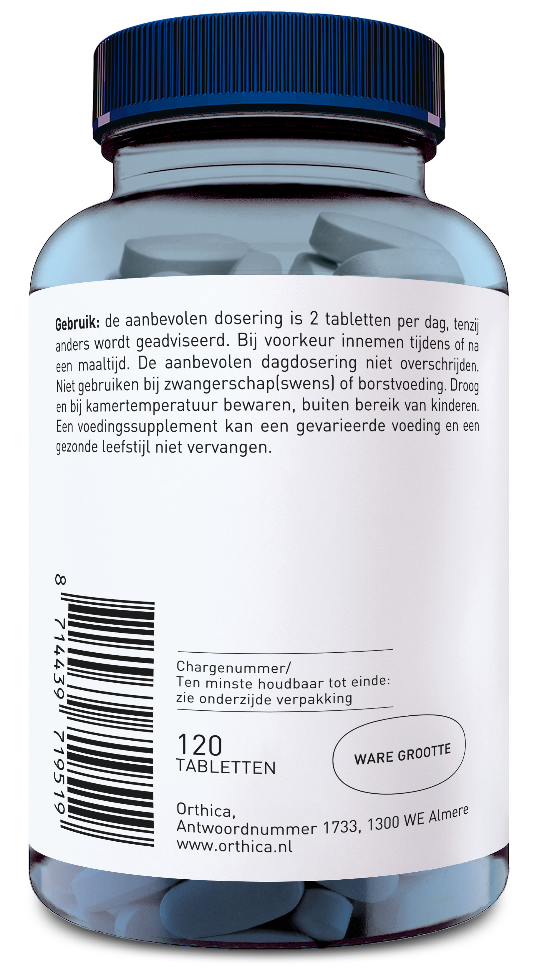 Een gevarieerde, evenwichtige voeding en een gezonde levensstijl zijn belangrijk. Een voedingssupplement is geen vervanging van een gevarieerde voeding.