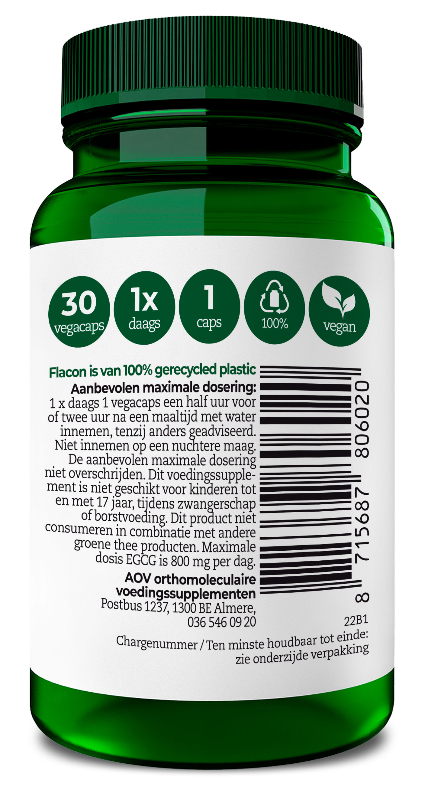 Maximale dosis ECGC is 800 mg per dag.
