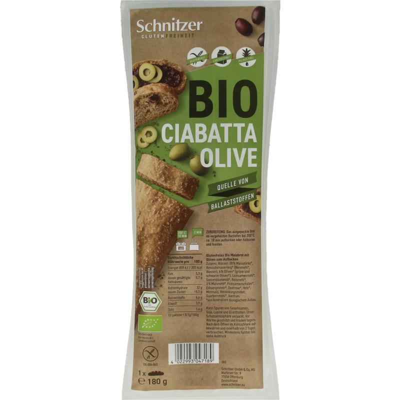 Glutenvrij biomaïsbrood met olijven om af te bakken.