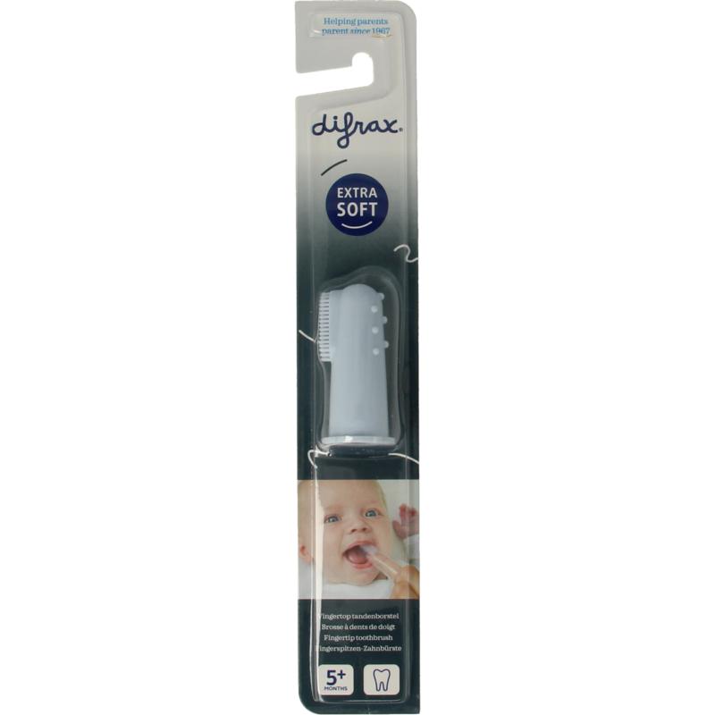 - Kindertandartsen adviseren met tandenpoetsen te beginnen, zodra de eerste tandjes doorkomen. Met de Difrax vingertop tandenborstel maken kindjes spelenderwijs kennis met tandenpoetsen. In het begin kan het tandenpoetsen van die eerste paar doorgekomen tandjes met een gewone tandenborstel best lastig zijn. In plaats daarvan kun je ook de vingertop tandenborstel gebruiken. Difrax helpt een handje door de toevoeging van massagebolletjes aan de achterkant van de vingertop tandenborstel. Massage kan de pijn bij doorkomende tandjes verlichten. De zachte tandenborstel is veilig in gebruik en biedt een goede start van de mondverzorging.