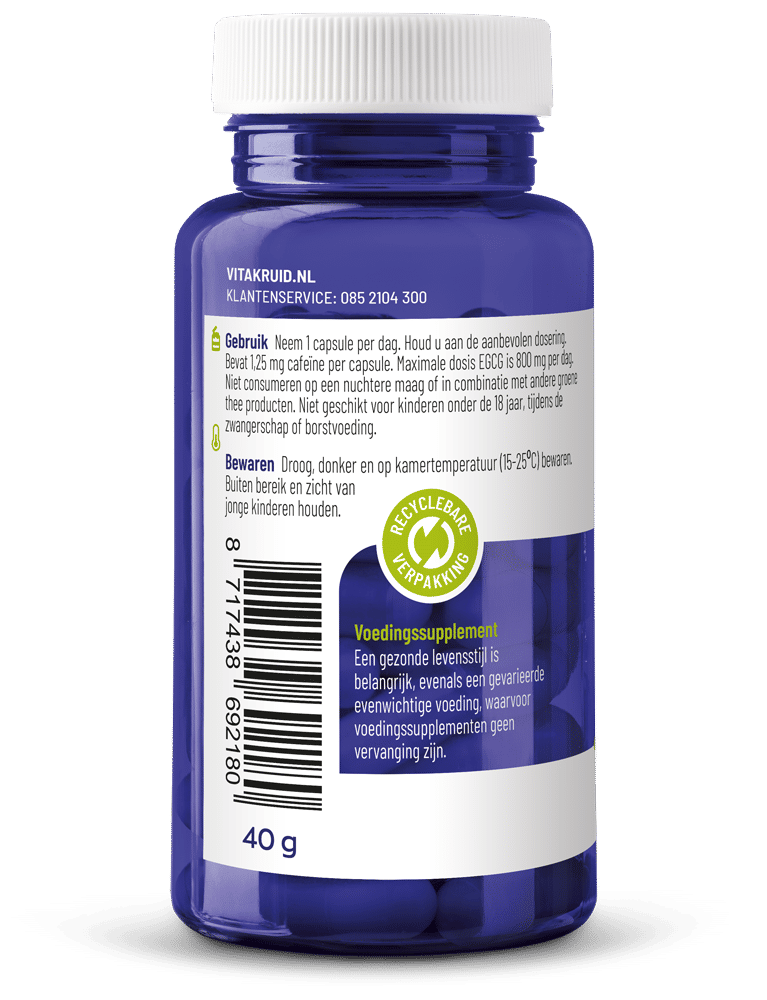 - 10% EGCG (epigallocatechine-3-gallaat) |
