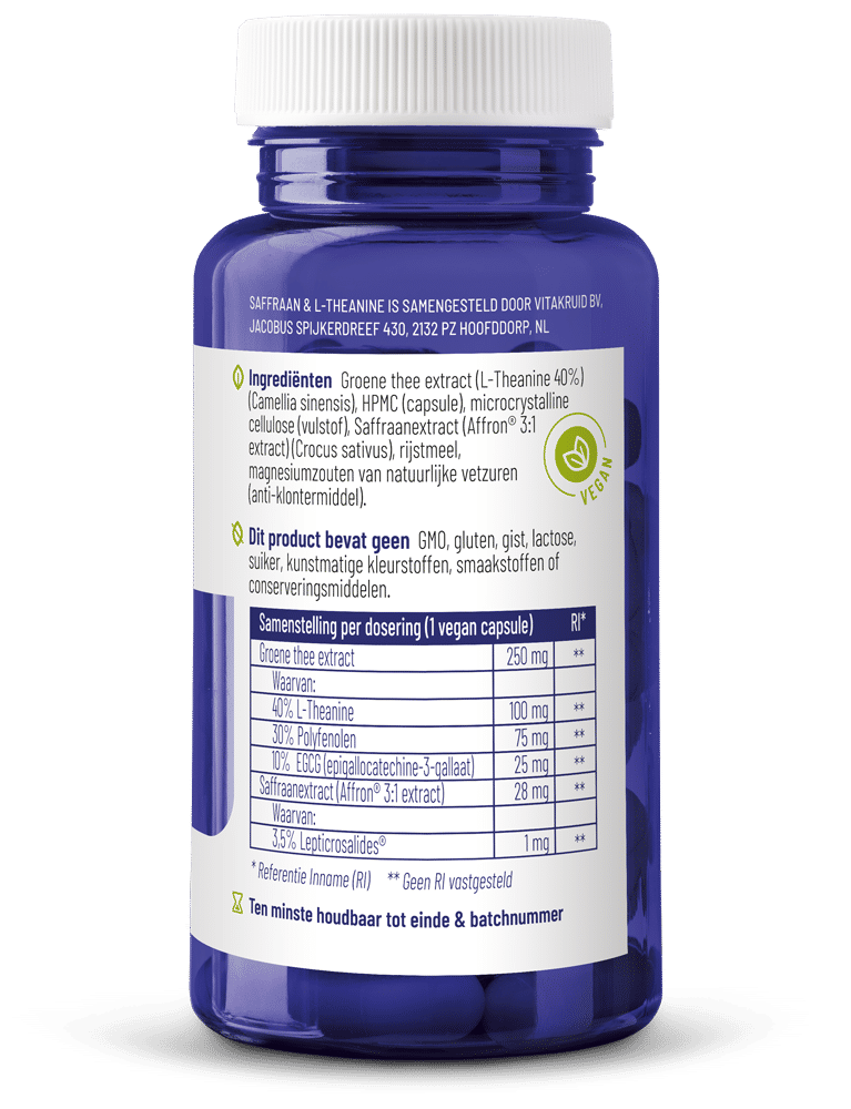 Vitakruid Saffraan 28mg (Affron®) & L-Theanine Groene Thee