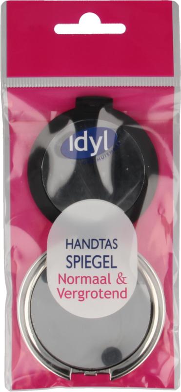 Spiegeltje voor het makkelijk meenemen in de handtas met een normale en vergrotende zijde.